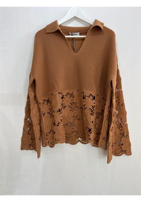 MAGLIA GIROCOLLO RICAMATA TRAFORATA