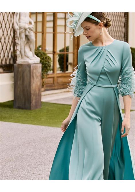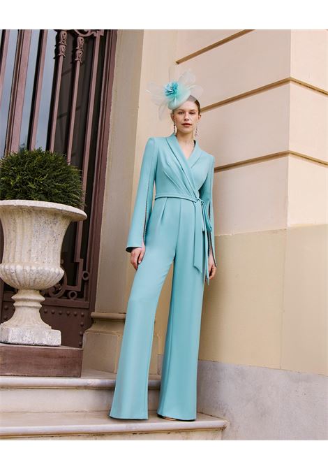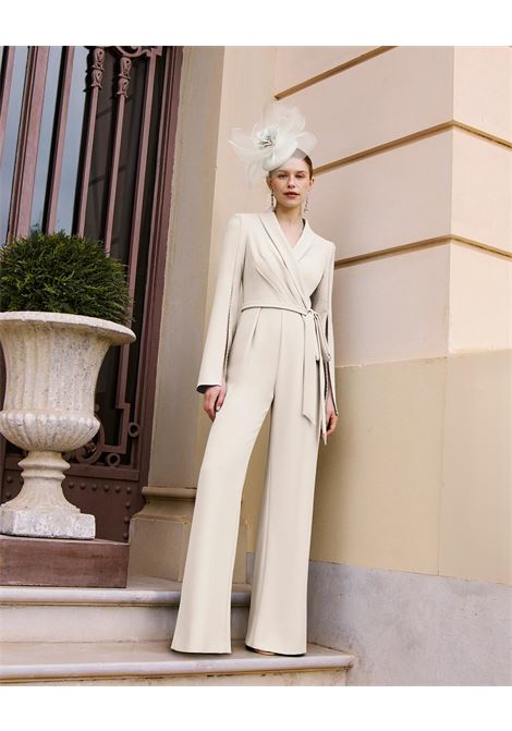 TUTA PALAZZO IN CREPE MANICA 3/4 CON PUME E PERLINE