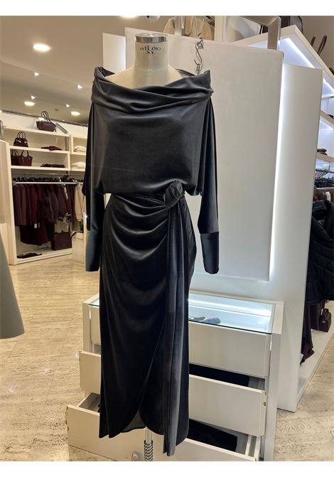 ABITO IN VELLUTO SCOLLO A BARCA CON AGGRAPPATURA IN VITA