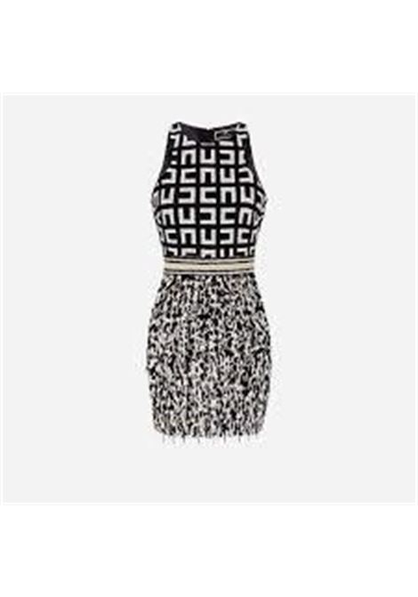 MINI ABITO IN CREPE CON RICAMO FRONTALE PERLE E PAILLETTES