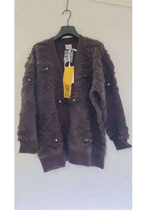 CARDIGAN GROSSO CON FIORI IN RILIEVO E STRASS