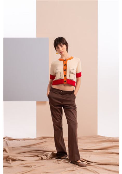 CARDIGAN SCOLLO A V BOTTONCINI BORDINO A CONTRASTO