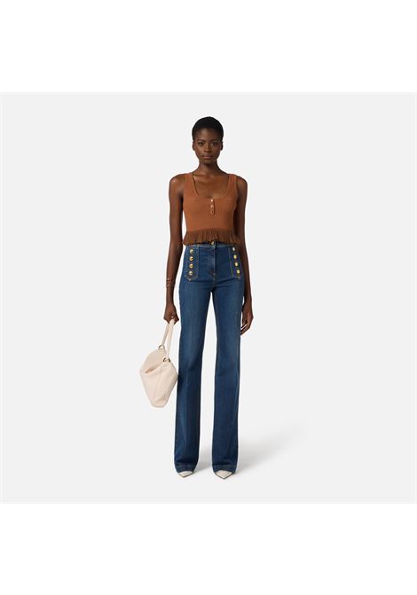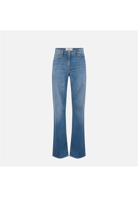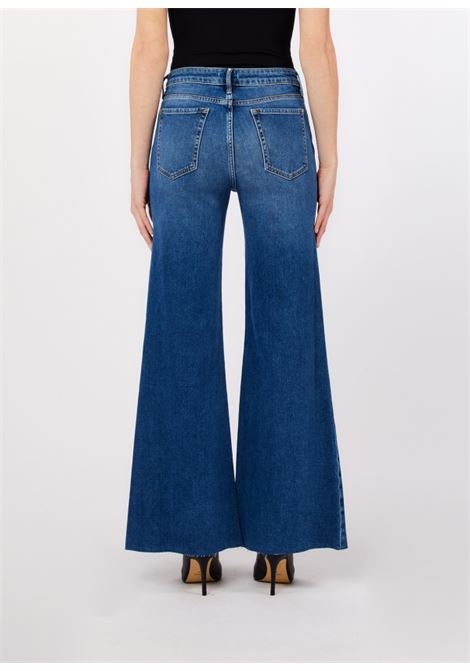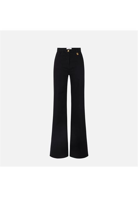 JEANS IN DENIM STRETCH VITA ALTA MODELLO PALAZZO CON BOTTONI CHE DELINEANO I FIANCHI