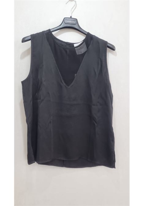 TOP IN CREPE CON ZIP CENTRALE E DETTAGLI IN PELLE