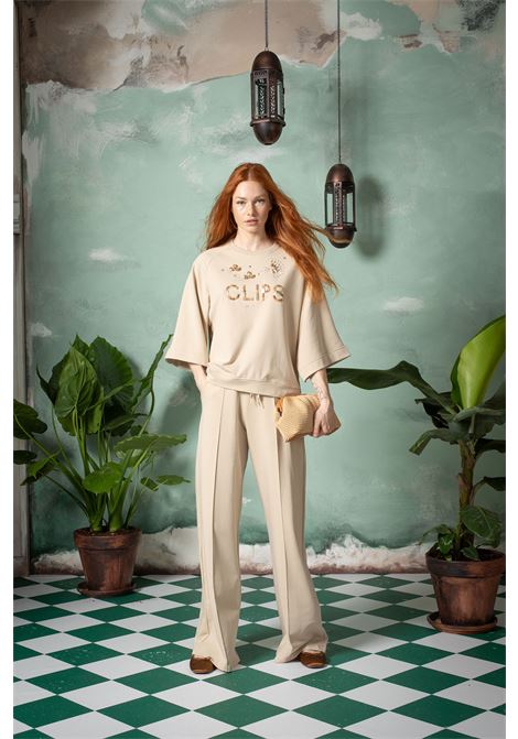 FELPA GIROCOLLO CON LOGO STRASS E PERLINE