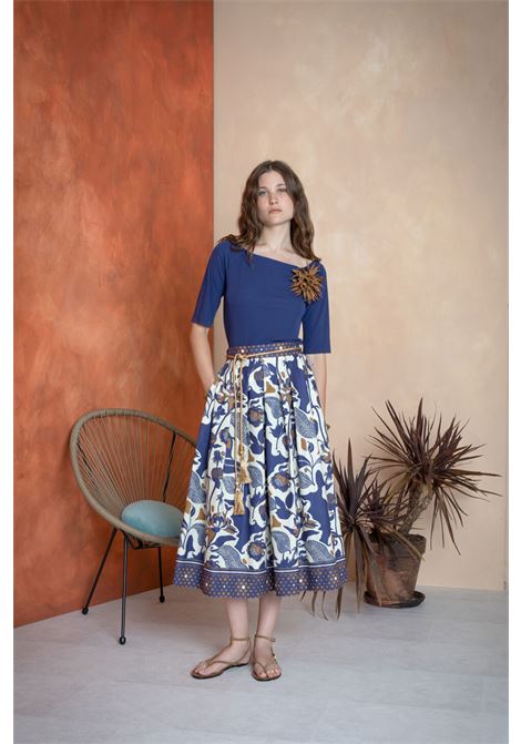 MAGLIA IN JERSEY SCOLLO A BARCA CON SPILLA FIORE