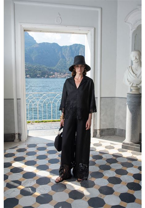 CAMICIA SCOLLO A V CON PARTI IN MACRAME'