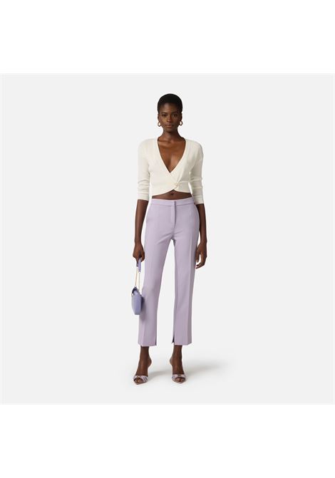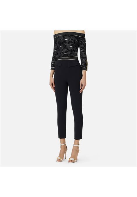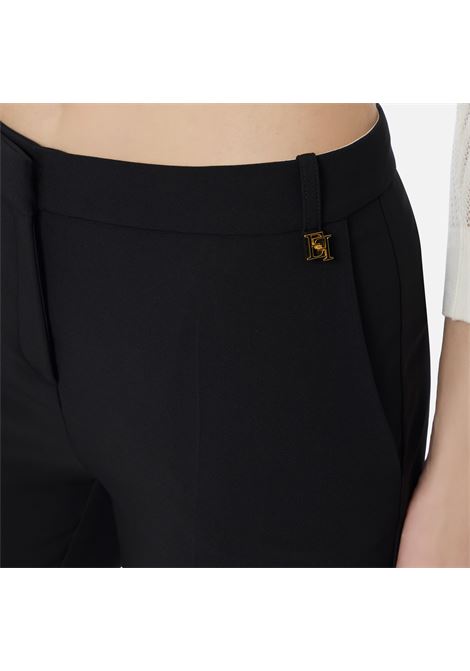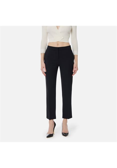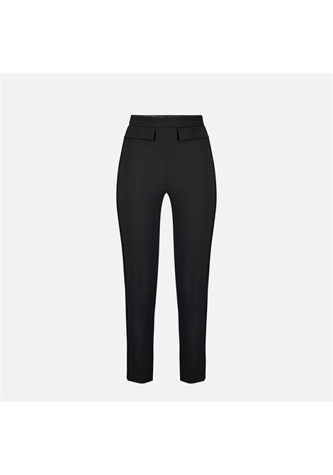 PANTALONE A SIGARETTA IN DOPPIO CREPE STRETCH CON PATTINE IMPREZIOSITE DAL LOGO RICAMATO