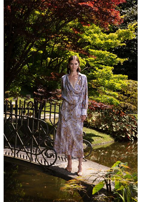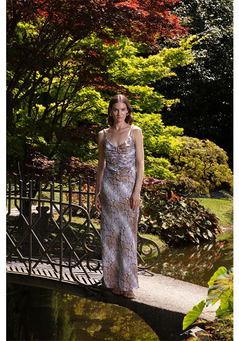 ABITO LUNGO IN SATEN FANTASIA CON BRETELLA STRASS