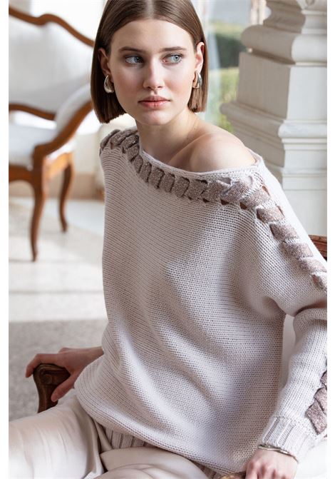 MAGLIA SCOLLO A BARCA TRECCIONE LUREX