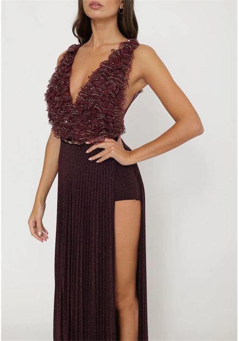 ABITO LUNGO LUREX E TULLE CON CRISTALLI