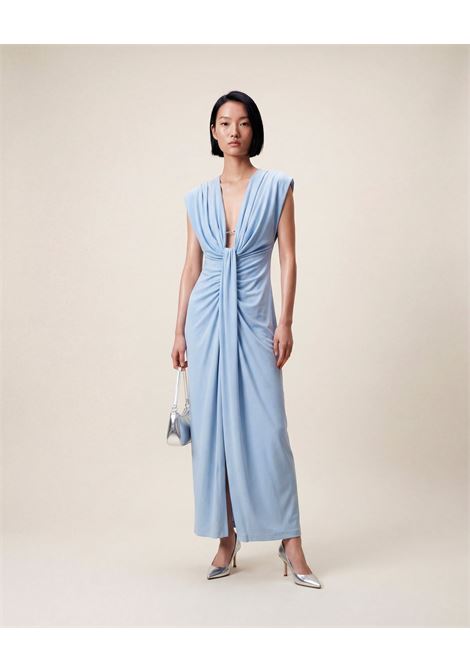 ABITO LUNGO SPALLE STRUTTURATE SCOLLO PROFONDO E ARRICCIATURA