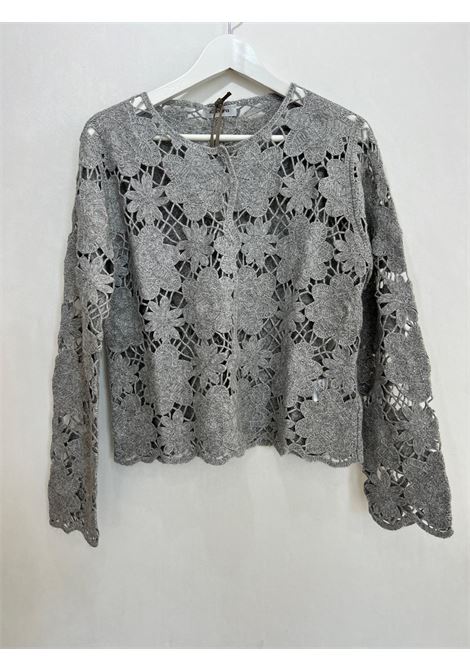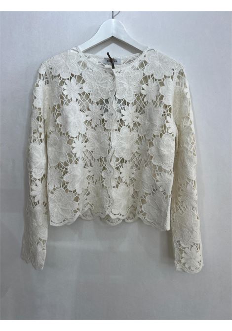 CAMICIA VELATA IN PIZZO CON COLLETTO IN RASO