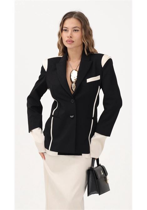 GIACCA BICOLORE CON INSERTI IN RASO LUCIDO