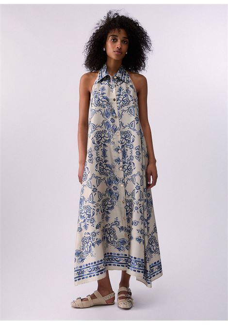 ABITO SCHIENA NUDA COLLO CAMICIA STAMPA FOULARD