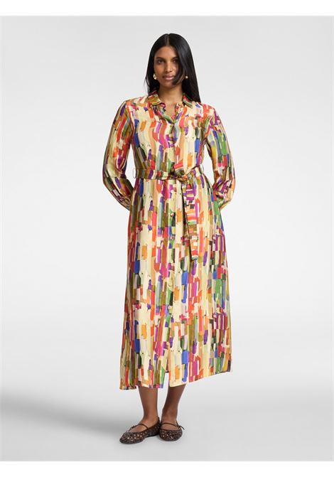 ABITO LUNGO IN ORGANZA STAMPA FLOREALE SPACCHI LATERALI