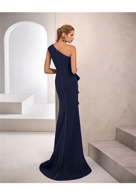 ABITO LUNGO IN CREPE SCOLLO ASIMMETRICO CON ROUCHES E BOTTONCINI SU SCHIENA