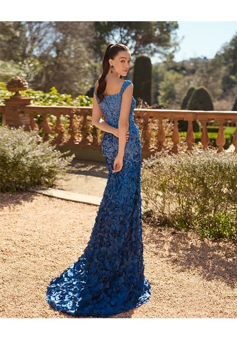 ABITO LUNGO A SIRENA SCOLLO A BARCA CON PETALI E CORALLINI SPACCO ALTO