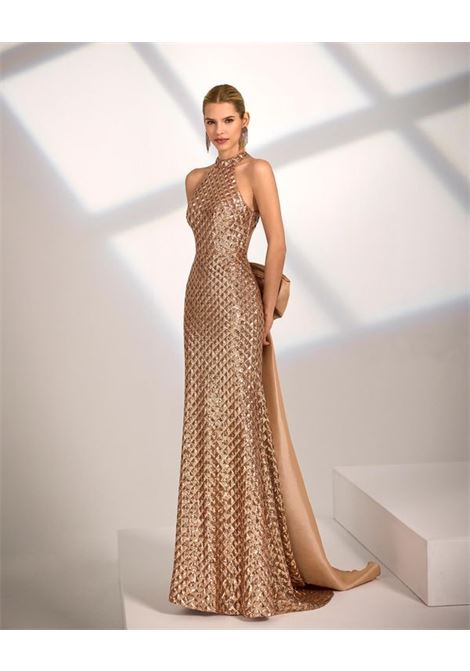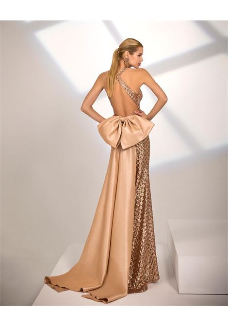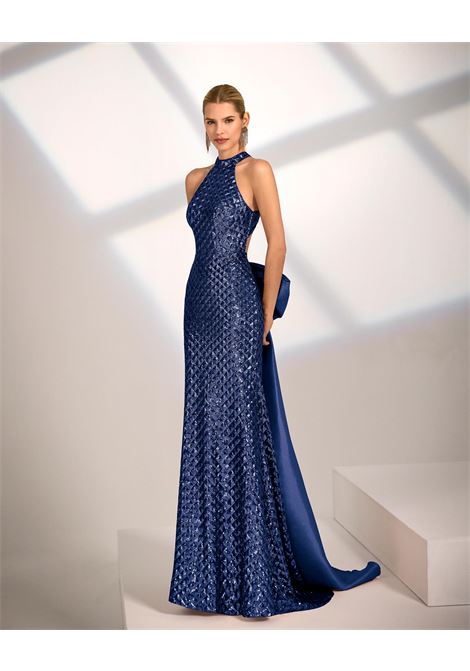 ABITO LUNGO MODELLO SIRENA IN PAILLETTES SCOLLO HALTER CON SCHIENA SCOPERTA E FIOCCO