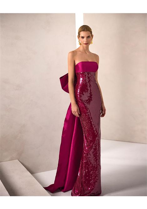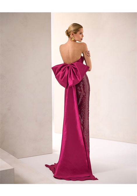 ABITO LUNGO A FASCIA MODELLO SIRENA IN PAILLETTES CON FIOCCO IN TAFFETA'