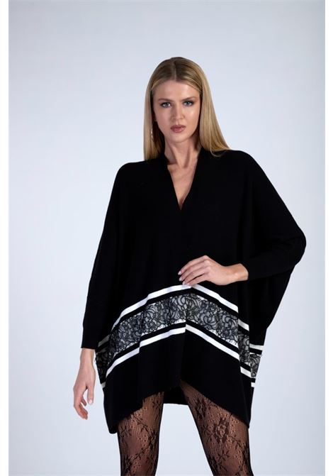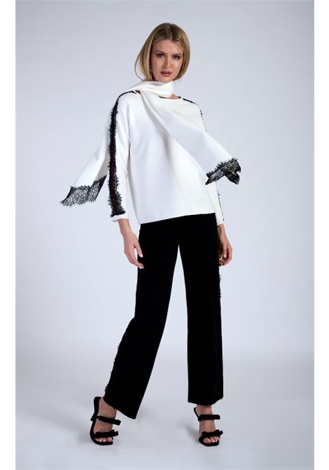 MAGLIA CON PIZZO A CONTRASTO E SCIARPINA ABBINATA