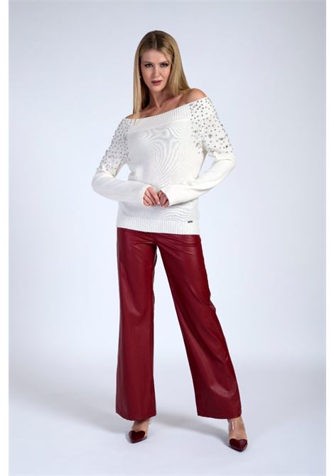 PANTALONE IN MAGLIA CON BANDE LATERALI IN PIZZO