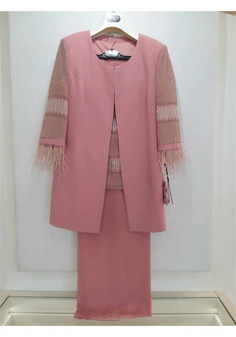 COMPLETO GIACCA TOP E PANTALONE CON PERLINE E STRASS