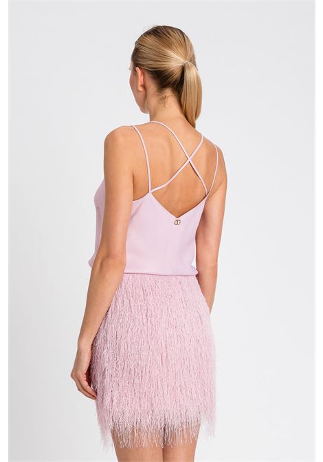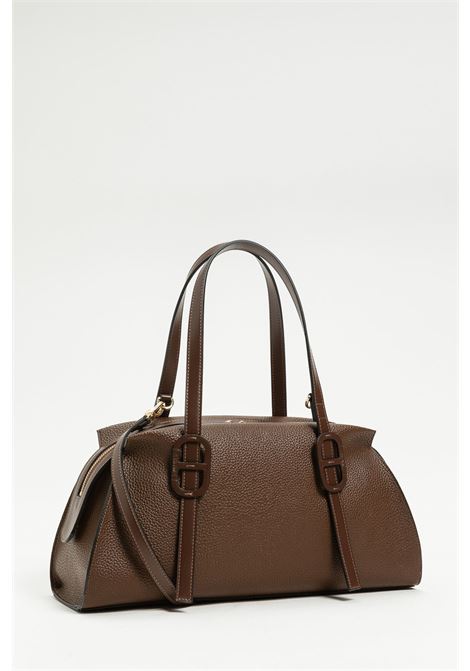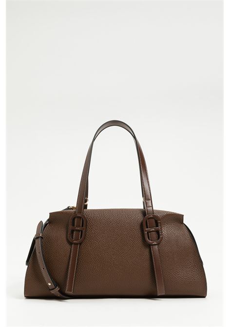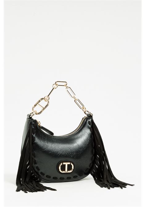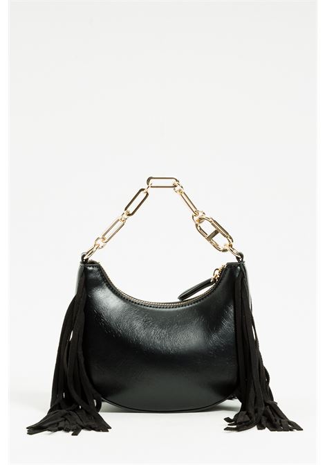 BORSA A SPALLA CON FRANGE CATENA E LOGO ORO