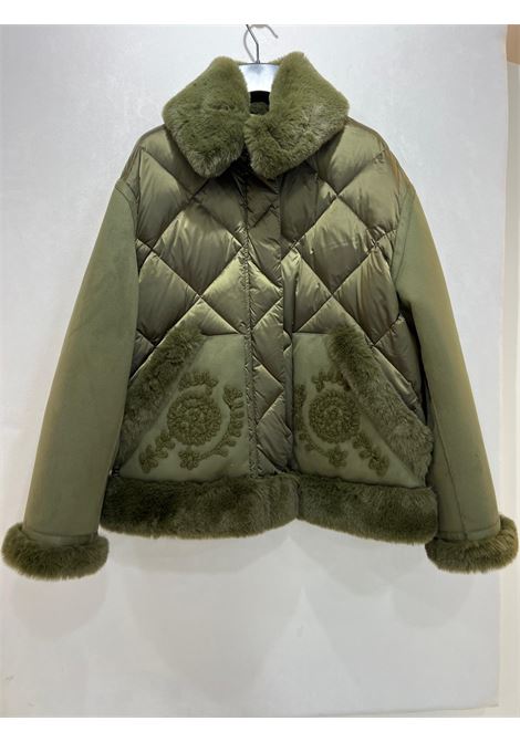 GIACCONE TRAPUNTATO INTERTI IN ECO-PELLICCIA RICAMO SU TASCHE