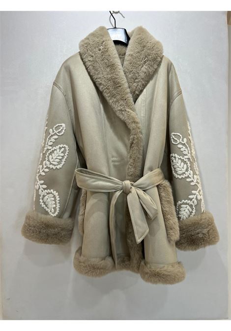 GIACCONE CON INTERNO DI ECO-PELLICCIA FUSCIACCA E RICAMO SU MANICHE